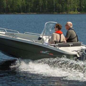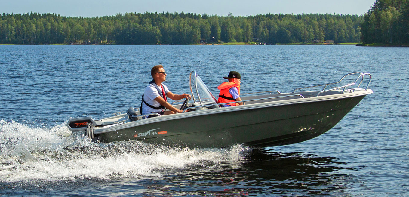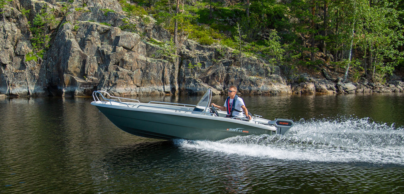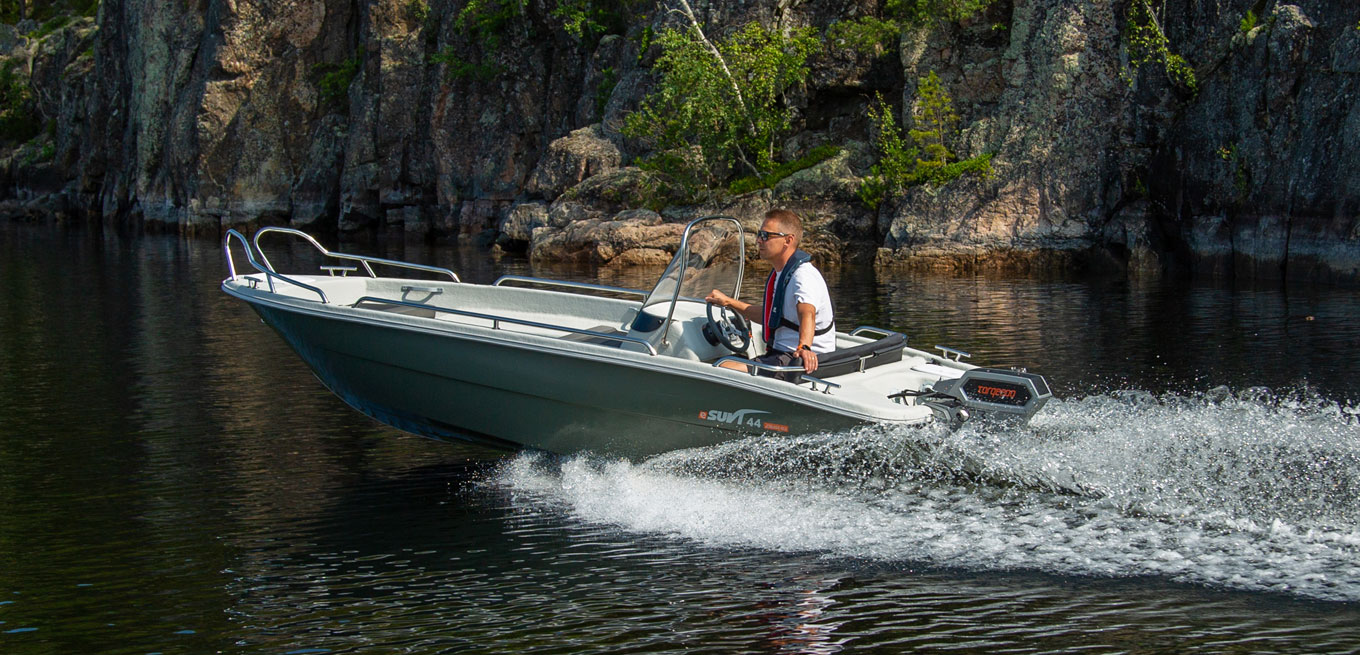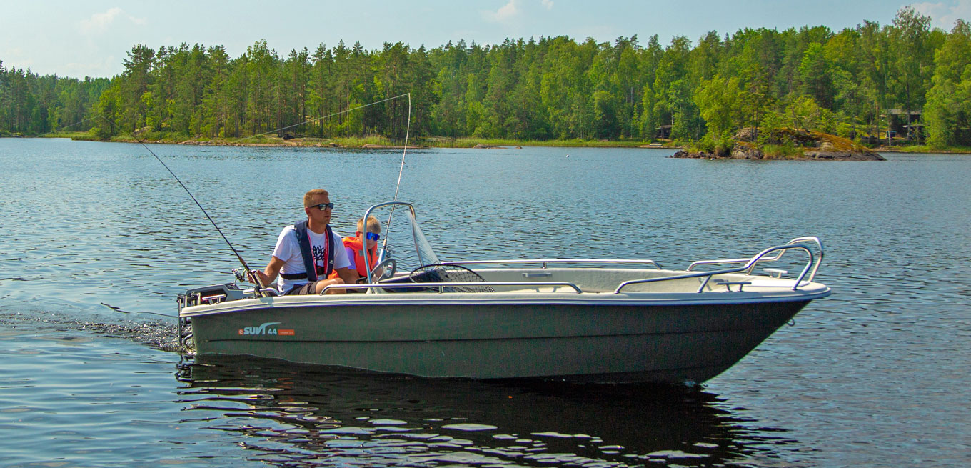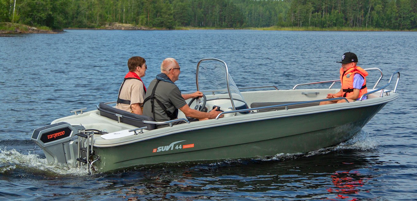 eSuvi 44 är en regnvattenlänsande multifunktionell stug-/fiskebåt för fyra personer. Båten har gott om förvaringsutrymmen (bl.a. repboxar i fören och aktern och en spölåda på ca 120 cm). eSuvi 44 har samma utmärkta bottenmodell som Suvi 44. Köljärn som standard!