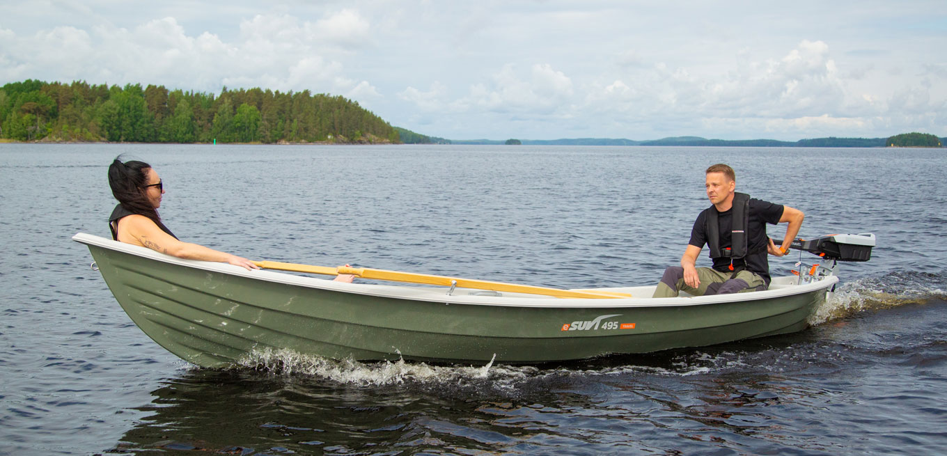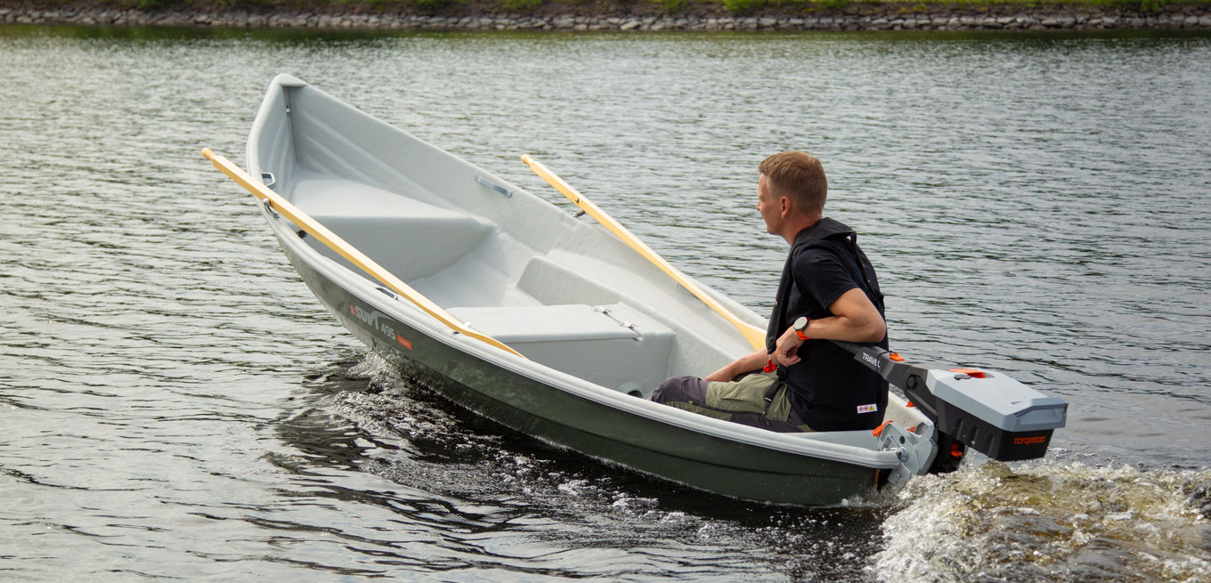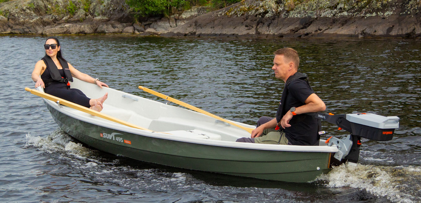 eSuvi 495 med Torqeedo Travel eldriven utombordsmotor